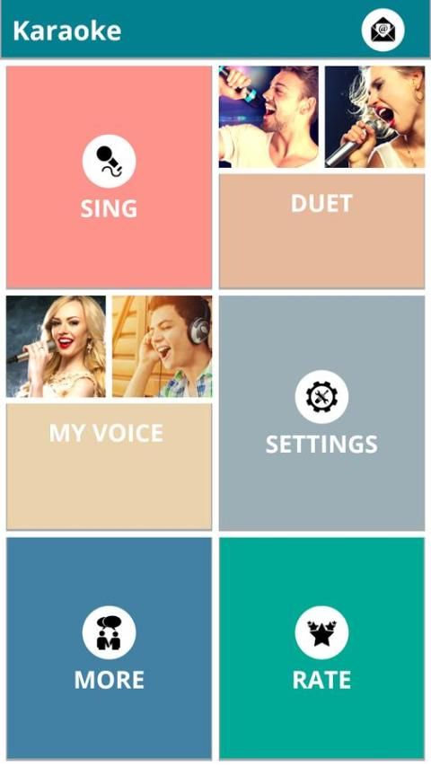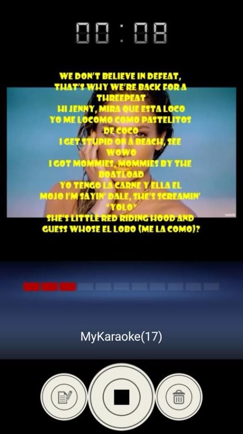 Buat lagu Anda dalam Mode Karaoke. Isi dengan lagu favorit Anda atau penyanyi. Mulai bernyanyi duet juga dengan seniman fitur dalam modus Karaoke yang merupakan fitur khusus dari aplikasi ini. Mulai merekam kinerja Anda dengan menekan tombol rekam.