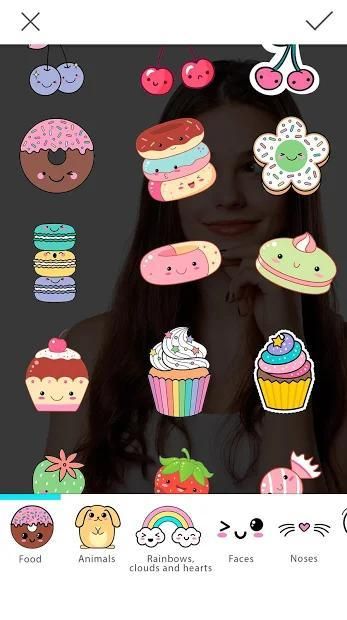 ♥ In kawaii camera Kawaii Photo Editor you can add many cute stickers for photos: kawaii food stickers, kawaii animals stickers, kawaii rainbows stickers, clouds stickers in kawai style, kawaii hearts stickers, text bubbles stickers in kawai style, kawaii noses stickers and cute kawaii faces stickers!