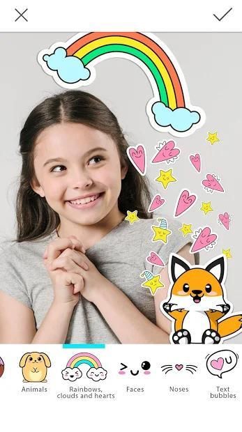 ♥ Kawaii camera Kawaii Photo Editor is the best sticker photo editor for kids, teens and adults! Add cute stickers for photos: kawaii food stickers, kawaii animals stickers, kawaii rainbows stickers, kawii clouds stickers, kawaii hearts stickers, text bubbles stickers in kawai style, kawii noses stickers and cute kawaii faces stickers on photo!