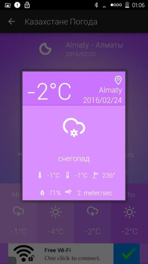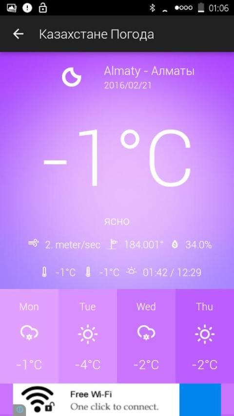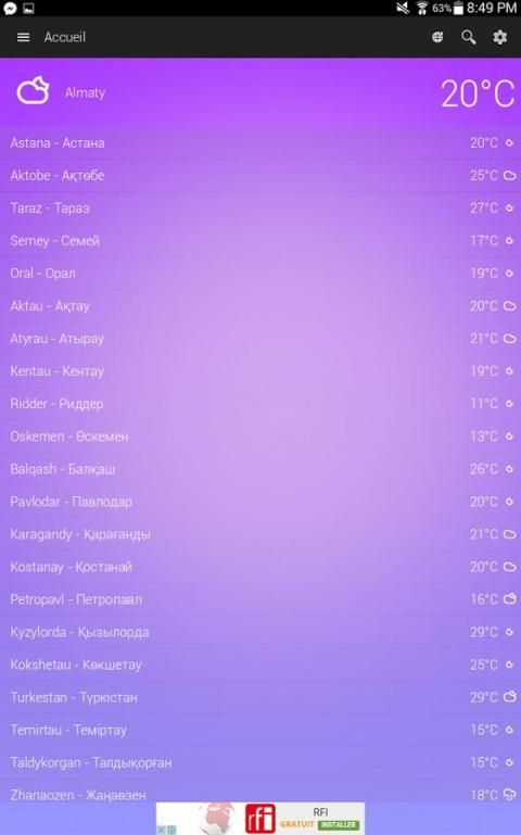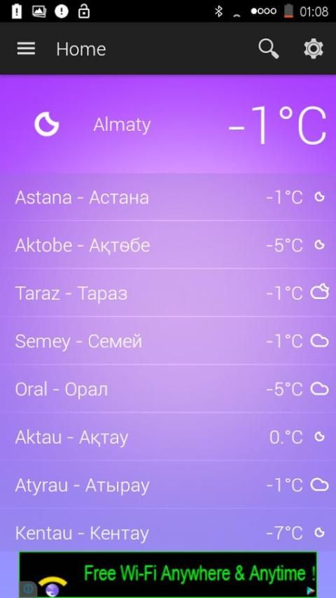 Cuaca Kazakhstan memiliki antarmuka dengan akses sederhana dan fitur intuitif cepat ke data.