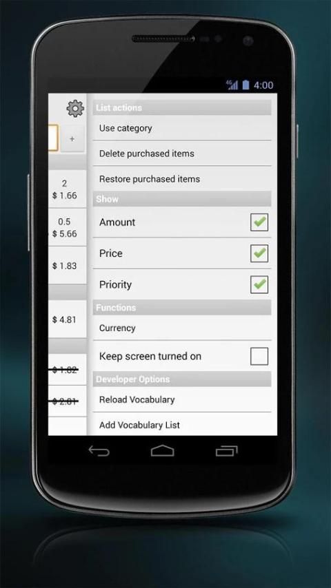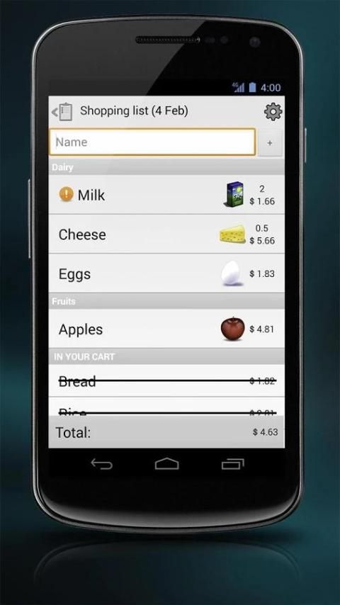 Aplikasi ini adalah aplikasi yang berguna dan sederhana untuk ponsel Anda! «Belanja» memungkinkan Anda untuk membuat daftar mudah karena saran khusus dan untuk menghitung nilai dari semua pembelian Anda.