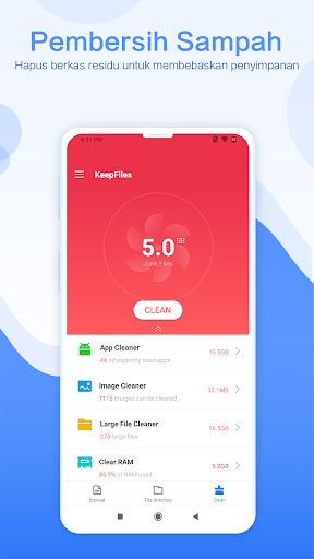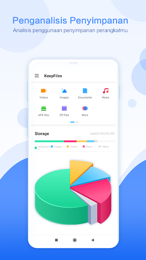 KeepFiles adalah sebuah pengelola berkas yang andal dan mudah digunakan, yang memungkinkanmu untuk menangani berkas apa pun di perangkat Android. Dengan antarmuka yang mudah dimengerti dan intuitif, KeepFiles mendukung ribuan fitur keren: analisator penyimpanan, pencarian cepat, organisator berkas, pembersih sampah, dan Manajer apl!