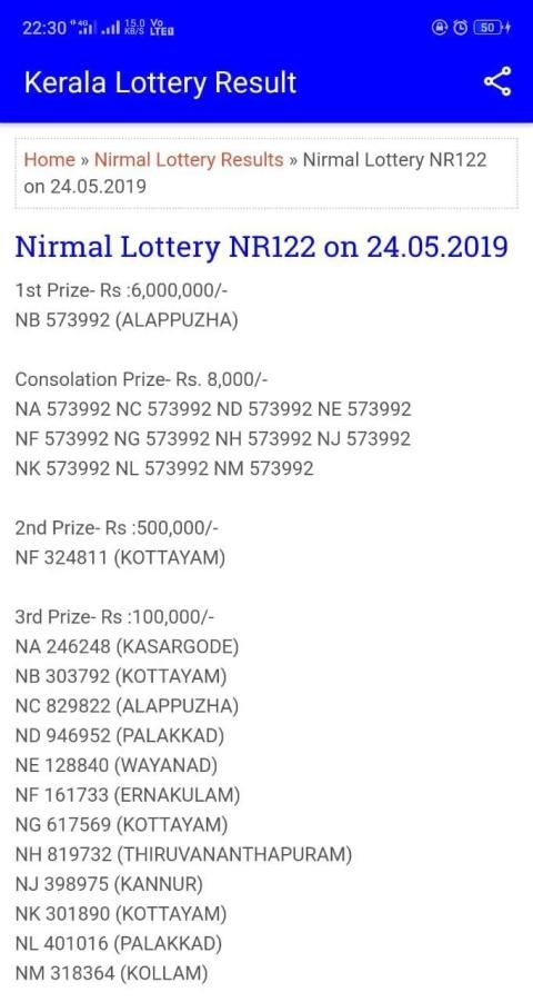 Kami menerbitkan Hasil Lotre Kerala dan Grafik Lotre Kerala dan Guessing Kerala Lotre