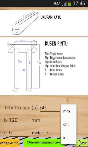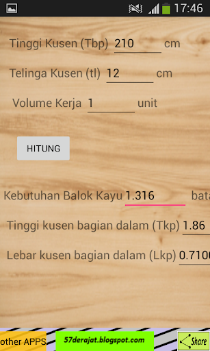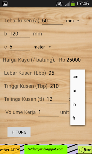 Digunakan untuk menghitung kebutuhan kayu yang diperlukan dalam suatu pekerjaan (kusen pintu, kusen jendela, daun pintu, daun jendela, kursi kayu, meja kayu dan lain-lain)
