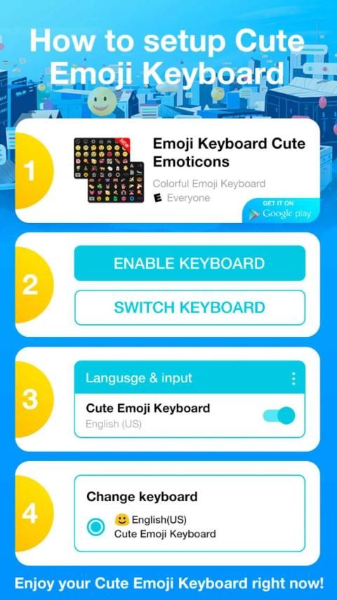 Emoji Keyboard is the best keyboard for Android that helps you type 3000+ emoji, emoticons, emoji art in a flash. Share massive funny GIF & fancy Stickers from keyboard via any social apps like Facebook, Whatsapp,etc. Cute, simple, stylish and free. With 1000+ awesome keyboard themes & customization, typing has never been so fun with Emoji Keyboard Cute Emoticons!