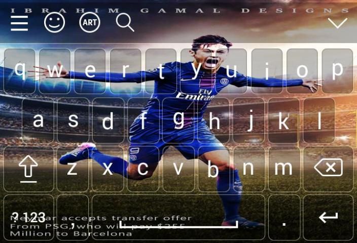 - Neymar jr Keyboard berlaku untuk melaksanakan memungkinkan Keyboard dengan karakter keyboard pilih pemain.