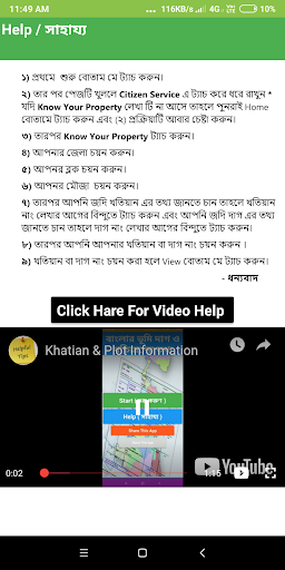 ২) তার পর পেজটি খুললে Citizen Service এ ট্যাচ করে ধরে রাখুন * যদি Know Your Property লেখা টি না আসে তাহলে পুনরাই Home বোতামে ট্যাচ করুন এবং (২) প্রক্রিয়াটি আবার চেষ্টা করুন।