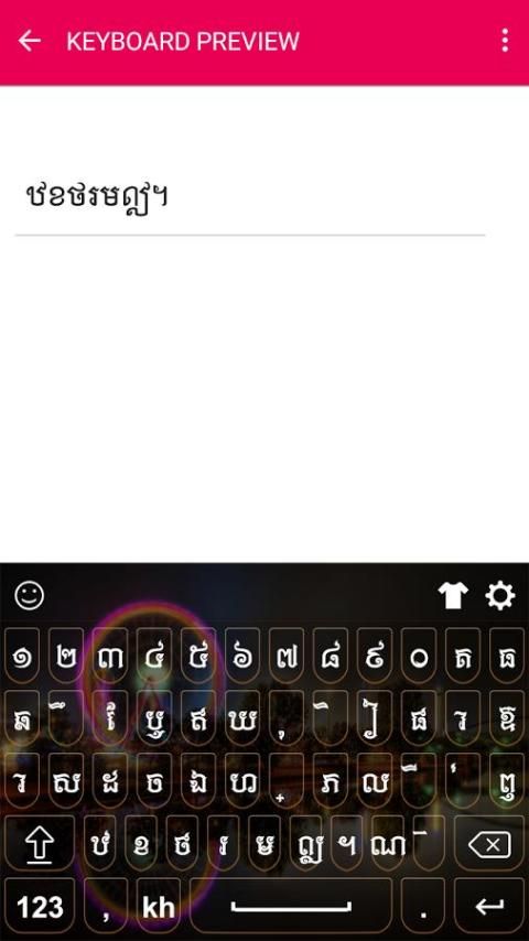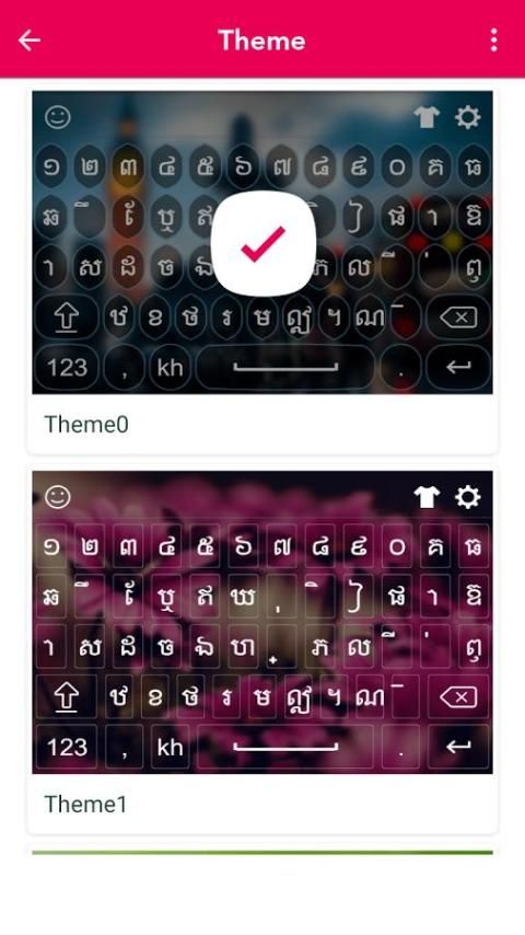 Keyboard Khmer dirancang dalam tema yang berbeda indah, pilih tema sendiri yang menarik mata Anda. Mengubah keyboard untuk bahasa Inggris, angka dan karakter khusus.