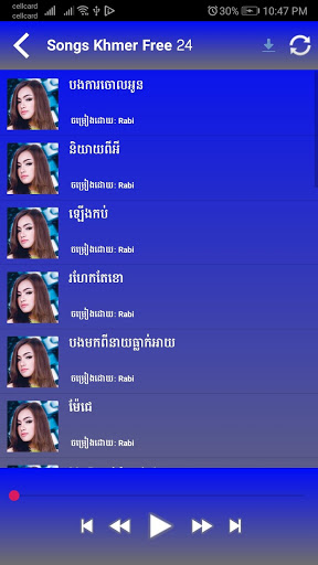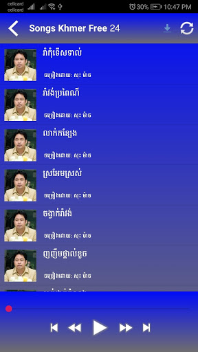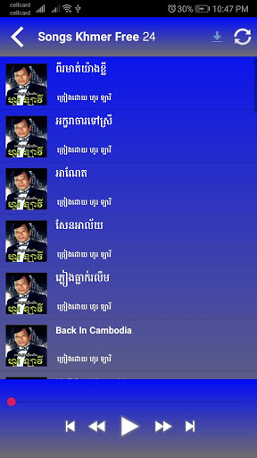 Khmer Song Pro this app you can you to listen Khmer's Song that have a lot of feature in Khmer's language and have a lot of old Khmer singer with men and women . Thank for get it and support my team .
