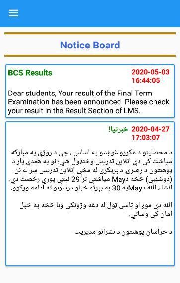 3. Notice Board: Provides you all notices issued by Khurasan University. It also updates you about all happenings at Khurasan University.