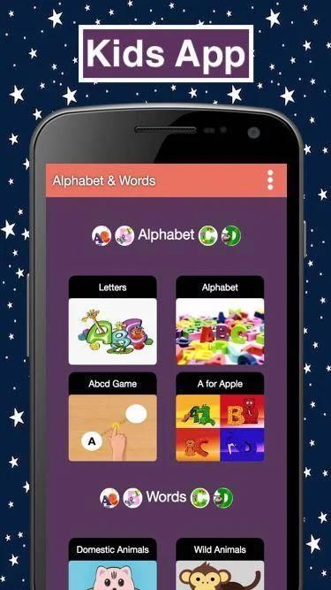 This app will teach the kids letters ,alphabets ,domestic animals ,wild animals