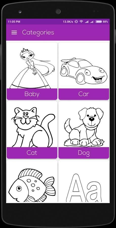 Anak-Drawing Book membantu untuk membuat gambar berwarna. Aplikasi ini menyediakan daftar kategori, banyak gambar, dan alat seleksi warna canggih. Juga, anak-anak memainkan tipe kecil permainan warna fill gambar yang berbeda. Anda dapat berbagi dan menyimpan gambar kreatif Anda di media sosial. Anak-Menggambar Buku menyediakan banyak kategori warna dan ulang warna pilihan.