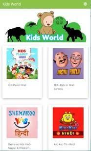 sajak dan lagu-lagu pembibitan yang termasuk dalam aplikasi ini, dan Kids World lebih aman dan sederhana untuk anak-anak untuk mengeksplorasi dunia melalui video online