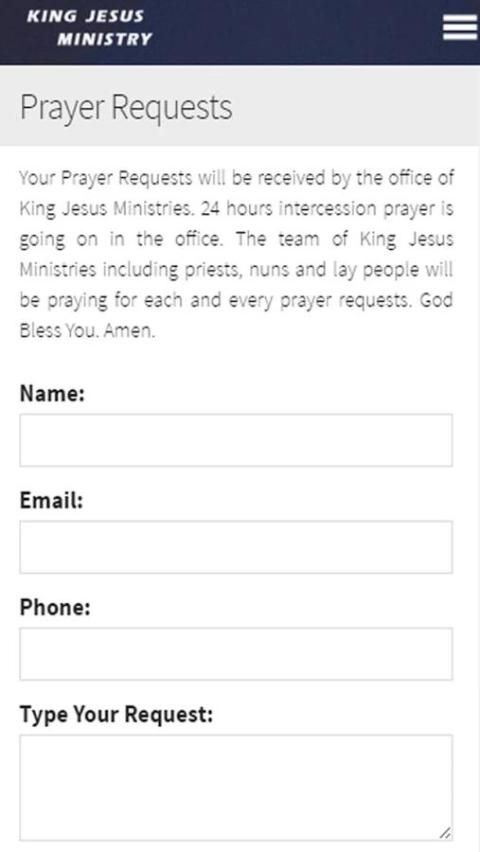 Kami ingin mengucapkan terima kasih semua orang yang meluangkan waktu untuk men-download Raja Yesus Kementerian Aplikasi Mobile. Dengan aplikasi mobile kami, Anda akan menerima pemberitahuan instan ke telepon menyampaikan pengumuman Anda, perubahan jadwal apapun, permohonan doa, setiap acara mendatang, testimonial, dan banyak lagi.
