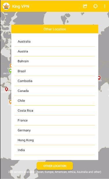 King VPN is virtual private server service for access the Internet securely and anonymously. encrypts your connection so that third parties with King VPN app. With more location server Asia, America and Europe. Access blocked apps and sites with Wi-Fi and cellular data networks. Hide your IP address, identity, and location from trackers, and enjoy maximum privacy and security.