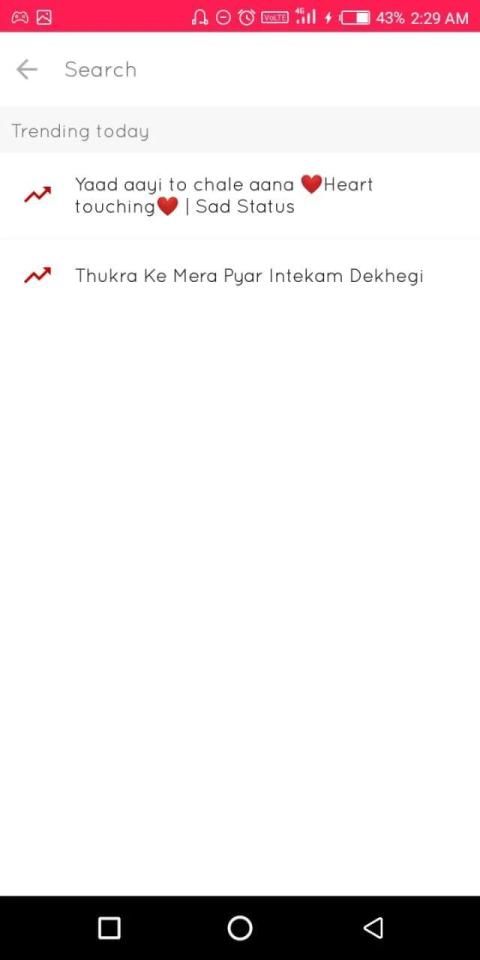 Search : Here you will search the videos by song name, and here u can see trending videos on application and category wise etc..