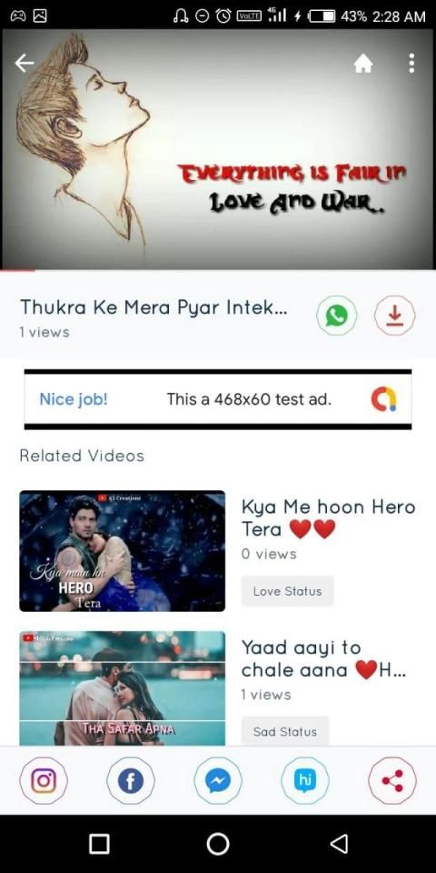 Everyday : We are uploading new video status everyday latest videos to share with your friends and family.