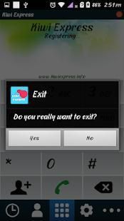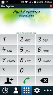 Kiwi Express Mobile Dialer dapat digunakan pada set ponsel Android yang kompatibel untuk membuat panggilan VoIP menggunakan penyedia layanan. Ini adalah aplikasi berat lite menawarkan pendaftaran lebih cepat dan panggilan menghubungkan. Aplikasi ini dirancang untuk penyedia layanan VoIP dan pengguna akhir.