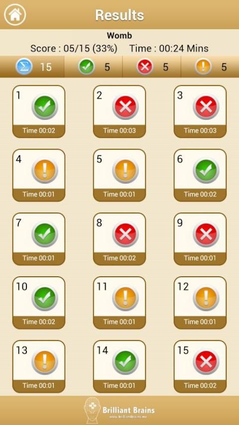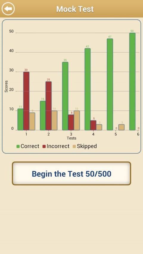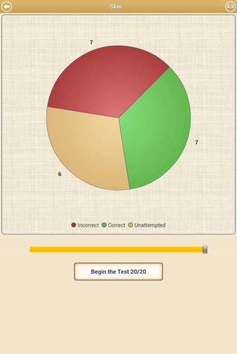 Ringkasan dari tes praktek disajikan di akhir setiap tes. Ini menunjukkan bahwa Anda saat Anda mengambil, skor, yang mempertanyakan Anda menjawab dengan benar dan mana Anda salah