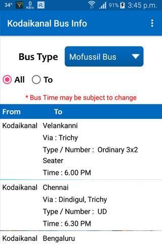 Aplikasi ini menyediakan semua informasi tentang Kodaikanal Mofussil bus dan Kota bus.