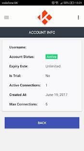 Account info & Support Screens.