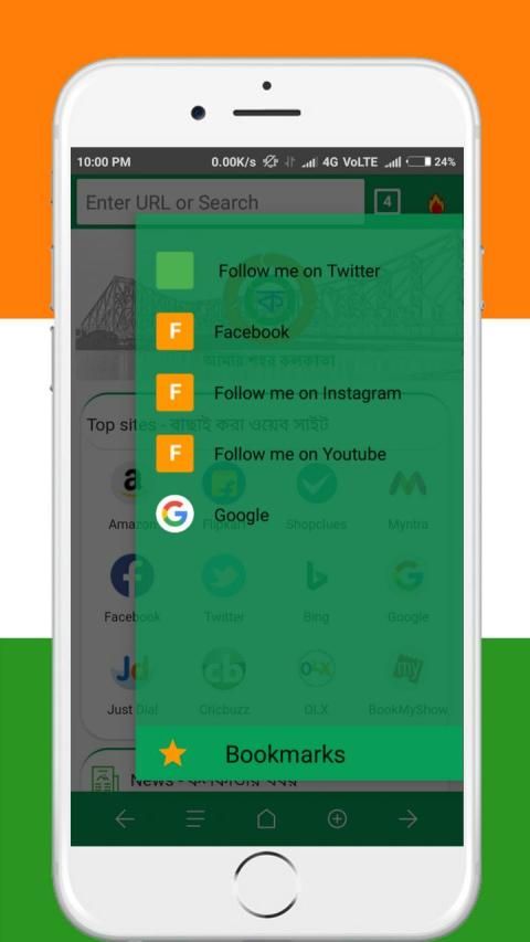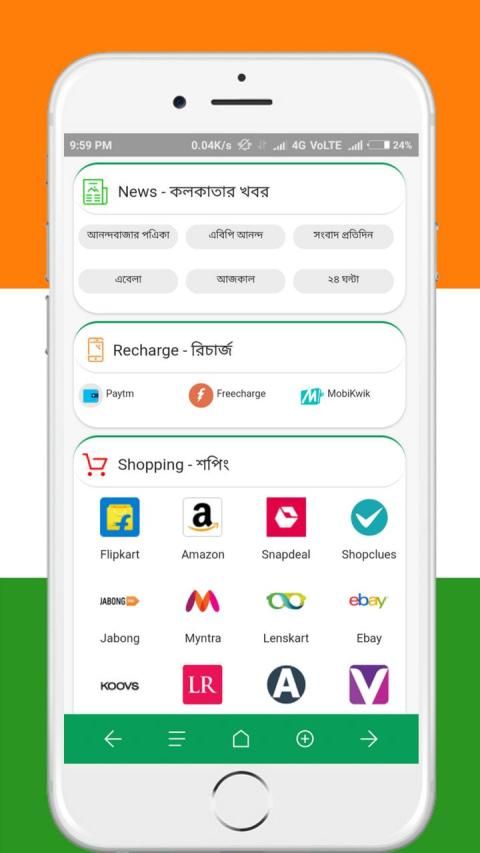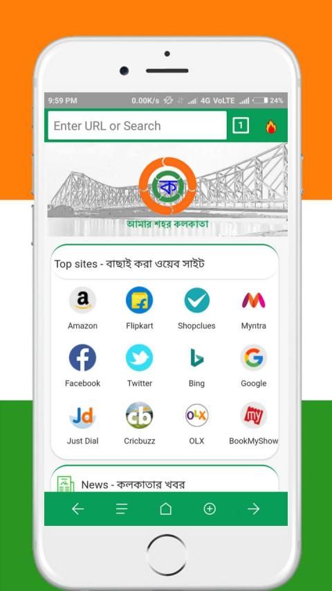 এটি কলকাতায় তৈরী প্রথম একটি ব্রাউসার যেটি আপনাকে সুরক্ষা স্পিড এর সঙ্গে একত্রে অনেক বহুল ব্যাবহৃত এপপ্স এর সুবিধা প্রদান করছে |