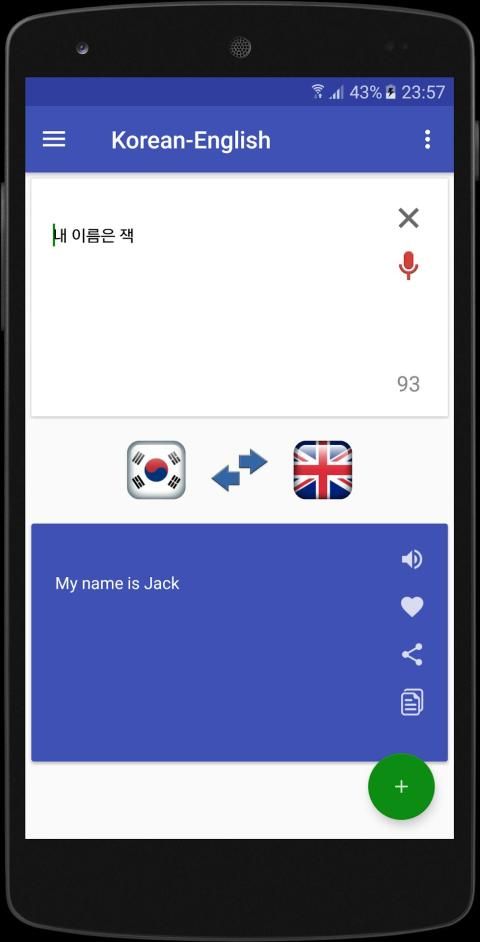 Aplikasi gratis ini mampu menerjemahkan teks dalam bahasa Inggris dan kata-kata Korea, dan Inggris untuk Korea.