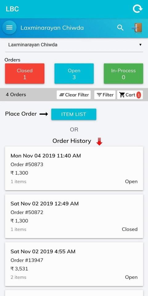 This app to place order with laxmi Narayan Chiwada