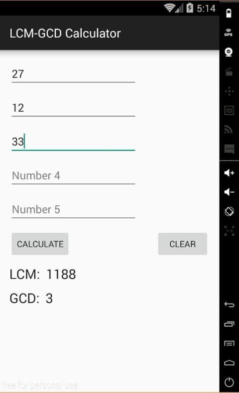 The application calculates the lowest common multiple (LCM) and the greatest common divisor (GCD) of 2 to 5 integers. It gives students in schools the possibility to check their homeworks.