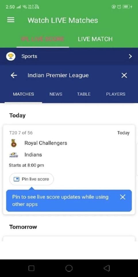 Ini menunjukkan semua game seperti Pertandingan Kriket LIVE, Pertandingan Sepak Bola Langsung, Pertandingan Bola Basket Langsung dan pertandingan LANGSUNG lainnya juga.