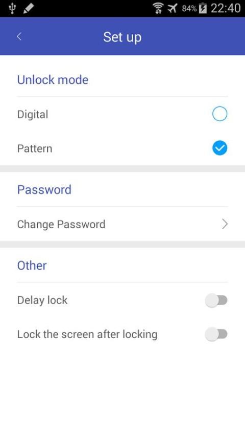 Terbuka Locky AppLock, Menu, Pengaturan