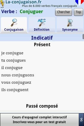 Dengan aplikasi la-conjugaison.fr Anda melihat kombinasi lebih dari 9000 verba Perancis!