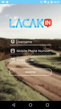 Untuk menggunakan Lacakin dibutuhkan sebuah kode event, dimana kode ini dapat diperoleh secara online melalui website Lacakin (www.lacakin.id) setelah dilakukan registrasi. Pengguna yang terdaftar kemudian dapat membuat kode event secara gratis tanpa ada pembatasan.