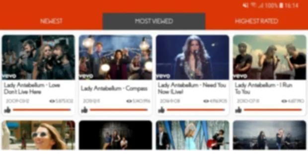 Lady Antebellum Video Song is the application by fan made. It updates continously top videos from Lady Antebellum Youtube channel and provide easy way to play them directly. These best videos are collected and sorted by time updated, total views and rating, which help any fan of Lady Antebellum can see and play the famous music video in the easiest way.