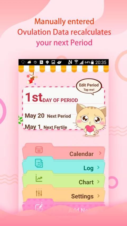2, yang dimasukkan secara manual data Ovulasi kalkulasi ulang Periode berikutnya