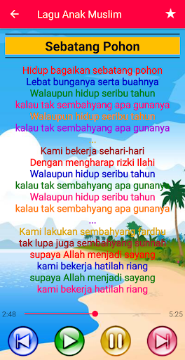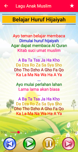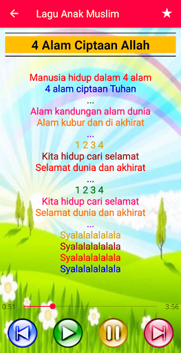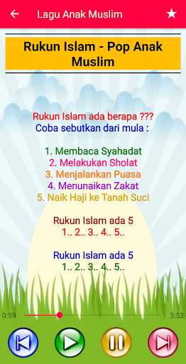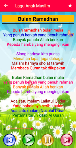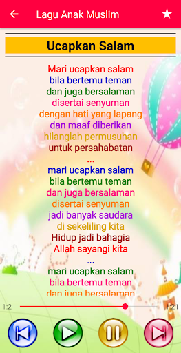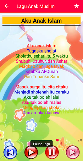 Merupakan aplikasi Lagu Anak Muslim paling attractive, dibuat dengan desain terbaik yang unik dan penuh warna, sehingga menarik bagi anak-anak. Aplikasi cepat dan ringan, serta sangat simpel dan mudah digunakan. Background / wallpaper berbeda pada setiap lagunya sehingga disukai anak-anak.