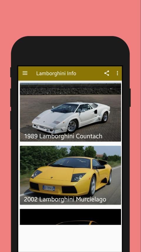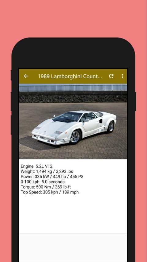 With this app, you will know about cars built by Lamborghini and their specs.