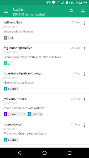 • Secara otomatis menyinkronkan repos Bintang Anda dari GitHub sebagai bookmark, ditandai oleh Bahasa