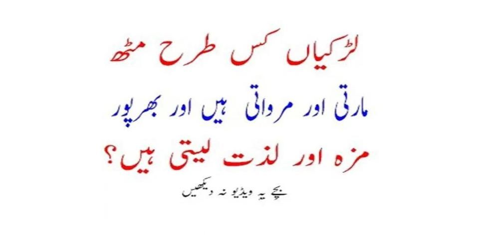Muth Marny ki aik bari WJA larkoon ki rusa sy shadi krna hai, akser yg suka bersenda gurau dan larki muth Marny kay adi jaty ho hain. di galt adtoon sy kis trah bacha ja skta hai.must Zani choreny kay liay rencana Mukammal Program sath kay APKO per amal karna hoga.aur Ahista Ahista yeh adat choot jaigi .neechay diye gai hidayat per amal kar kunci ap musht Zani sey Nijat pasaktey hain .