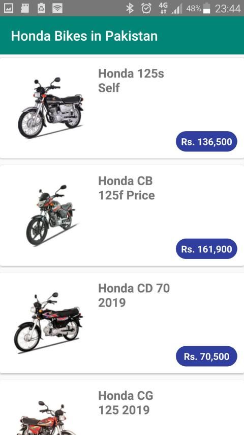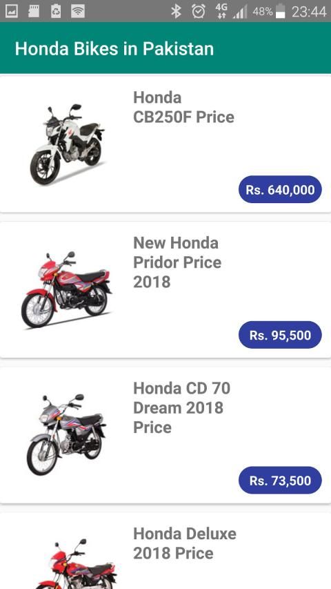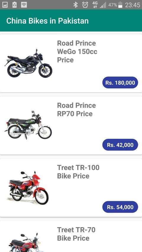 so due to this big industry of motorbikes in Pakistan we make an app to every one so all people can check their favourite bike prices in Pakistan and user can buy easily their favourite bike without any further effort.