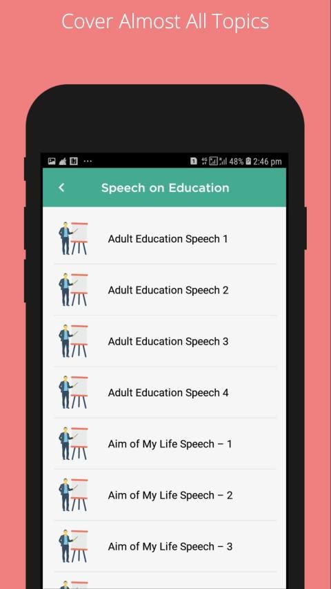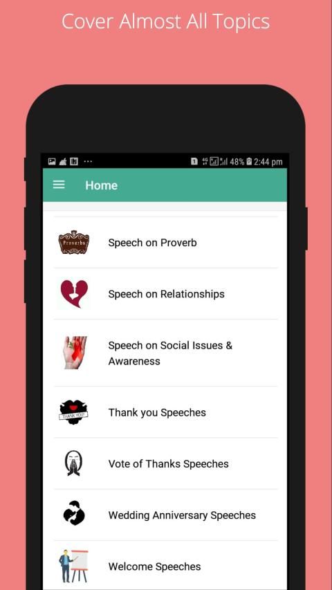 Here are different types of topics in this app. this app is very useful for everyone and also all peoples but speeches specially students. This app is helpful for students their competition and educational life.