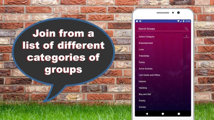 Bergabunglah dengan 1000 grup aplikasi Whats baru dan terbaru melalui tautan, tautan Grup Terbaru Lucu, Grup berbagi video lucu terbaru, grup Puisi Terbaru, Grup Persahabatan Terbaru, Grup Aktor-Aktris, Bergabung dengan Penawaran dan Penawaran Grup, Grup Islam, Grup Beli dan Jual, Grup militer, Kelompok Cricket, dan Grup Hiburan. Aplikasi ini juga memungkinkan pengguna untuk menambahkan tautan grup mereka sendiri dan grup mereka akan terlihat oleh pengguna lain di Aplikasi. Pengguna dapat mencari grup berdasarkan kata kunci atau dengan nama grup.