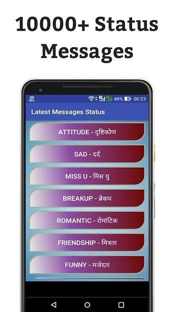 Berisi Pesan dan Status dalam banyak bahasa seperti bahasa Inggris, Hindi, Tamil, Telgu, odia, Punjabi, Marathi