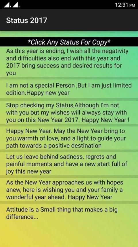 Happy new year 2017 Status whatsapp untuk profil Anda. Tahun Status WhatsApp baru di sini.