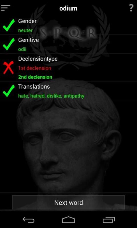The Latin Trainer seharusnya membantu Anda untuk dapat menerjemahkan kosa kata latin,