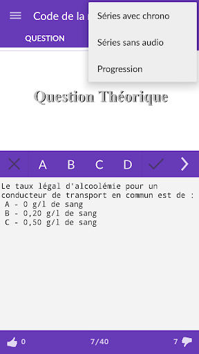 Aplikasi ini adalah solusi untuk memungkinkan Anda merevisi pemeriksaan kode jalan raya Prancis di Android dan menempatkan peluang maksimum di pihak Anda untuk berhasil dalam drive lisensi.