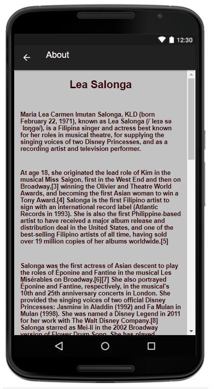 Streaming mp3 lagu Lea Salonga. Aplikasi ini tidak menampilkan download lagu untuk pelanggaran hak cipta. Instal aplikasi ini secara gratis. memainkan musik MP3 dengan koneksi internet.