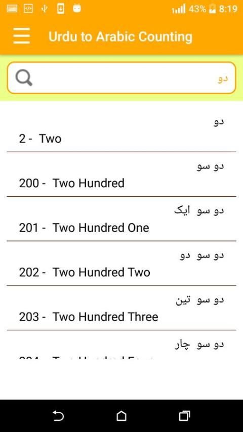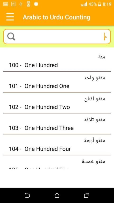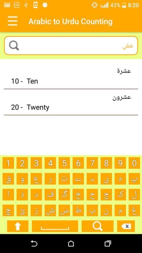 Anda dapat mencari Dari Urdu ke Arab dan Arab ke Urdu dari Counting ini aplikasi belajar tanpa internet. Aplikasi ini termasuk 999+ menghitung kata-kata.