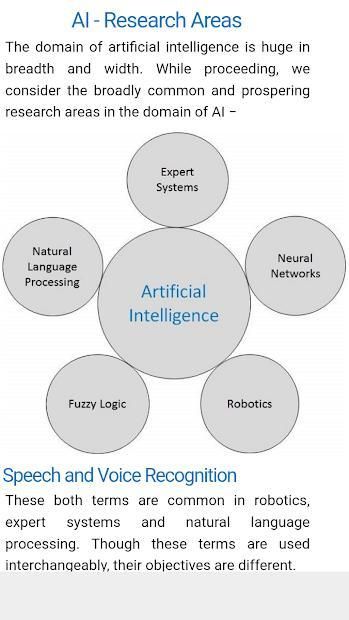 This App provides introductory knowledge on Artificial Intelligence. It would come to a great help if you are about to select Artificial Intelligence as a course subject. You can briefly know about the areas of AI in which research is prospering.