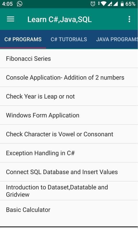 This app contains C# , Java,SQL Programs and tutorials available totally offline.